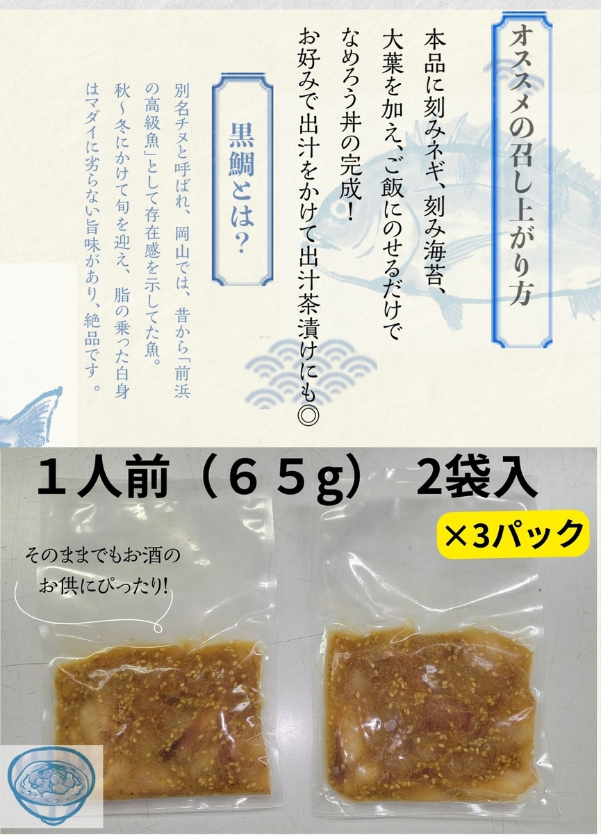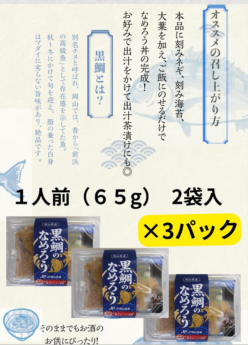岡山県産 黒鯛なめろう 65g×2袋 ×3パック(合計6パック)
